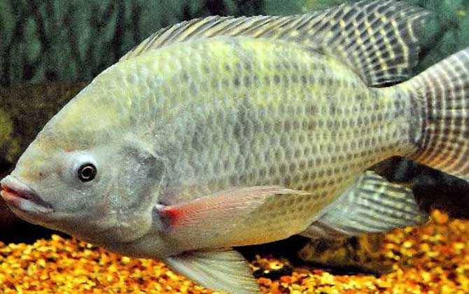 尼罗罗非鱼原产于非洲东部、约旦等地,背鳍边缘黑色,尾鳍终生有明显的黑色条纹呈垂直状,喉、胸部白色,尾鳍末端不达臀鳍的起点,体侧具有8~10条横带纹,尾柄背缘有一黑斑,尾柄高大于尾柄长,具有生长快、食性杂、耐低氧、个体大、产量高和肥满度高等优点,因而在我国许多地区可单养或作杂交亲鱼用。