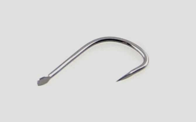 3、无刺海夕钩:无刺海夕钩是黑坑和竞技钓常用的钩型,特点是钩条细、钩门宽、钩柄长、钩尖内敛、无倒刺,适合在黑坑或竞技比赛中钓鳊鱼、鲮鱼等中小型鱼类。