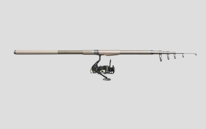海竿结构上比手竿复杂,主要由竿体、绕线轮、导环三个部分组成,其中竿体和手竿一样多数是振出式,绕线轮因排线方向不同主要有鼓式轮和纺车轮两种,而导环则是专门用来走渔线的配件,另外海竿的竿柄位置还有用于安装绕线轮的轮座。