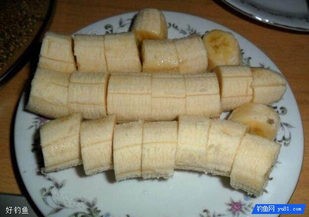 若是青皮香蕉就可以直接切成小块或是小的颗粒直接做饵装钩。若是熟的橡胶必须与豆粉类混合使用,豆粉最好是炒熟了,如蚕豆粉或豌豆粉。钓鲤鱼可以加一点蜂蜜,鲤鱼爱吃甜,然后混合成面饵就可以了。