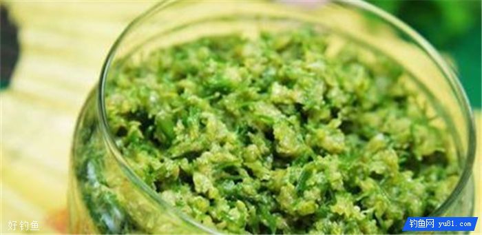 韭菜切碎或切断用豆浆机打碎,越碎越好。然后把细的玉米面用开水烫熟或蒸熟,放凉后加入麦麸,如果不够粘再加入适量的面粉,用手搓调整到适合的状态,不要调得雾化过快,会招来小鱼闹窝。这时候加入白糖或蜂蜜搅拌均匀,然后再加入韭菜,最后喷上曲酒就制作完成。第二天就可以使用,可以用来做窝也可以用作搓饵或爆炸钩饵。